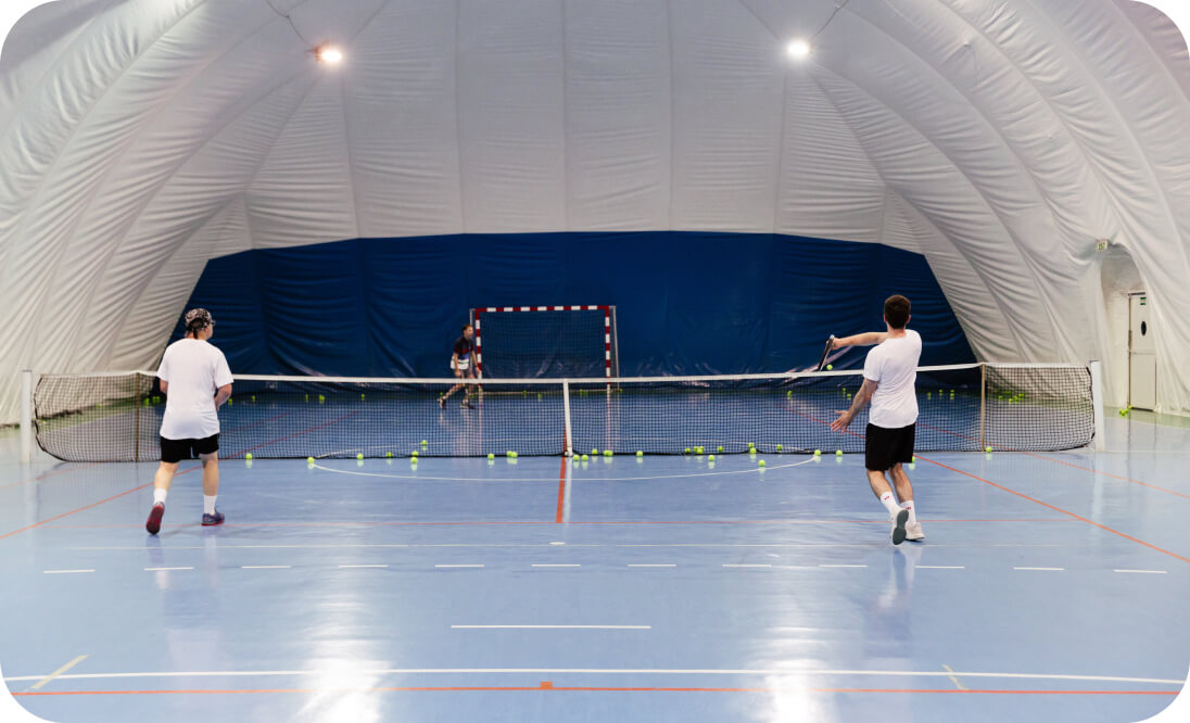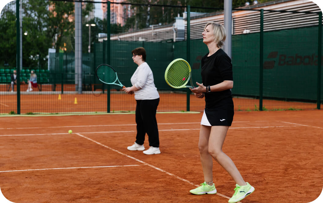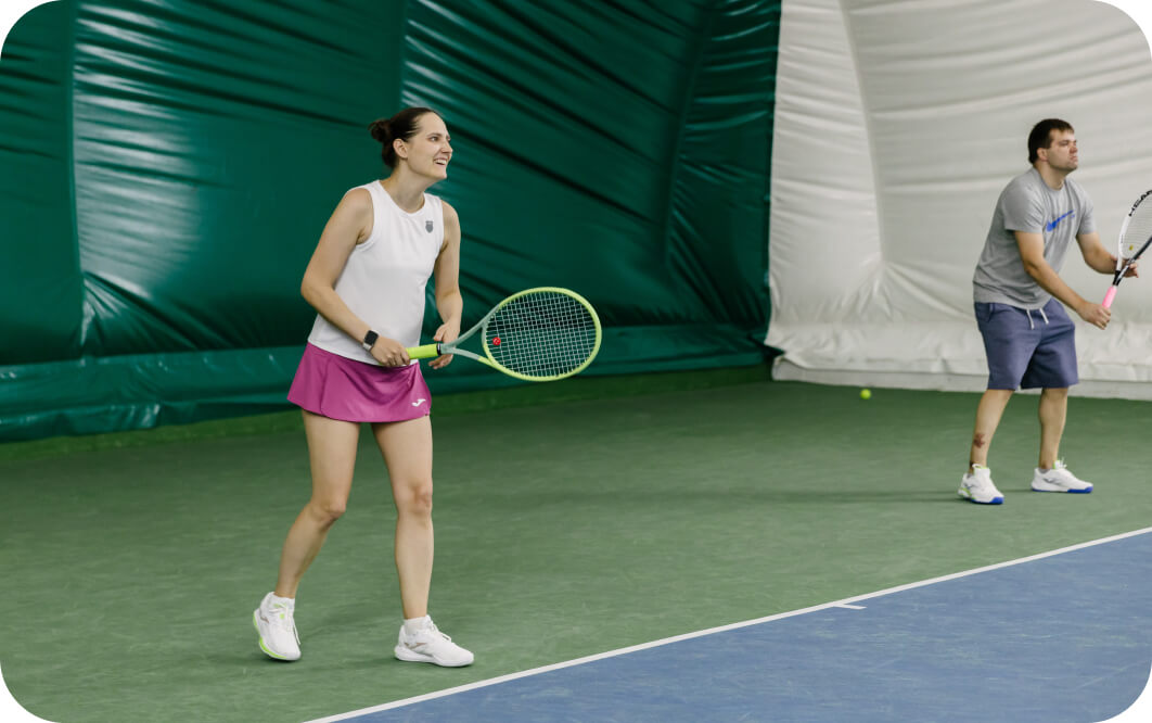 Тренер работает сразу с двумя игроками, этот вид тренировки подходит для пар с разным уровнем игры. Отличный вариант для занятий с друзьями или второй половинкой